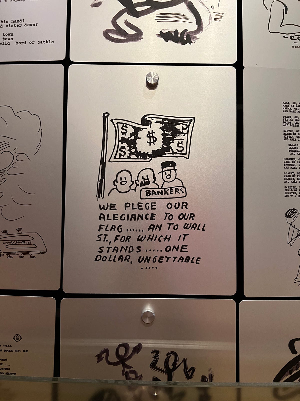 Close to 90 years later, Woody's pledge of allegiance and inadequate housing depictions are as pointedly relevant as ever. Thanks for focusing on them, and his wife who saved so much of Woody's work.