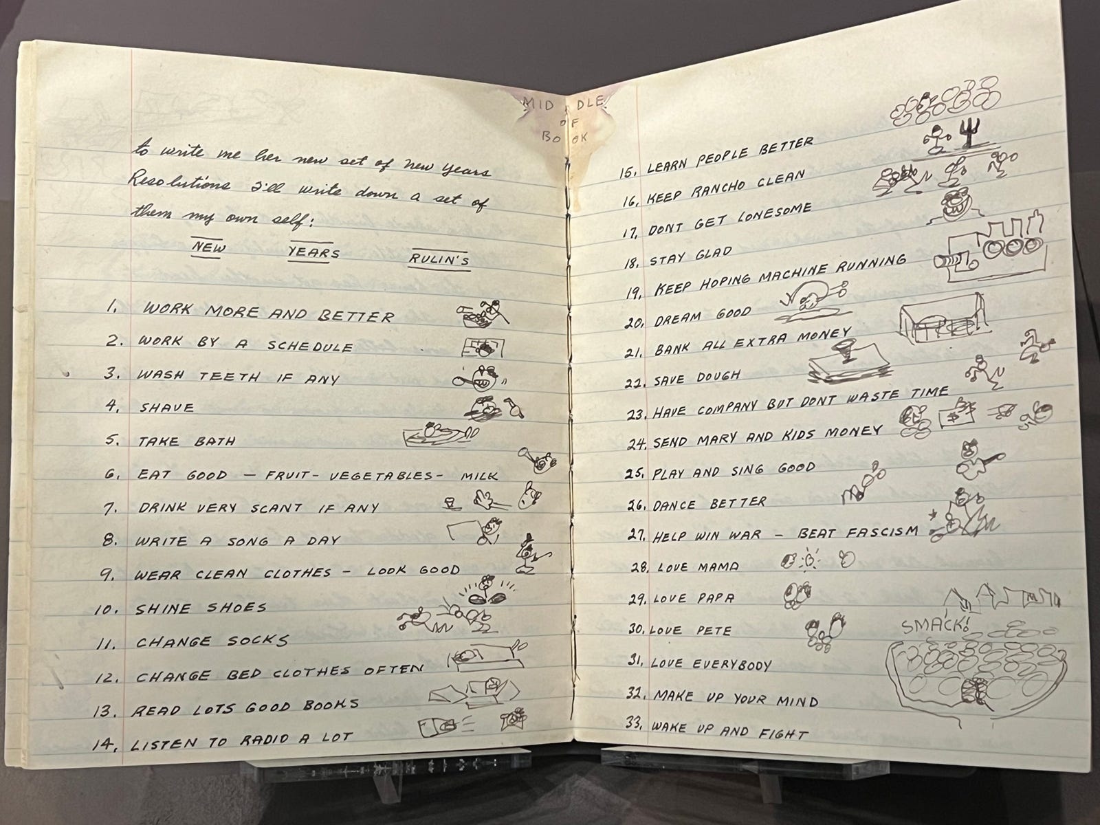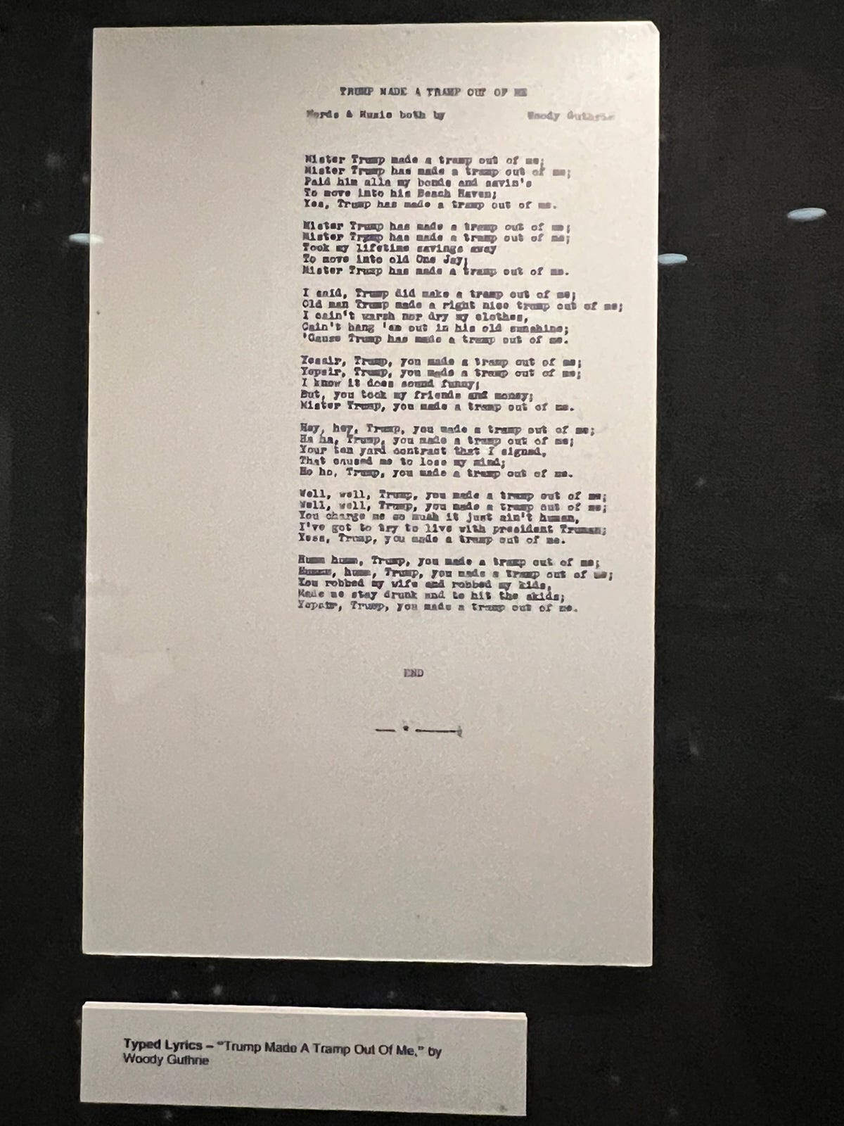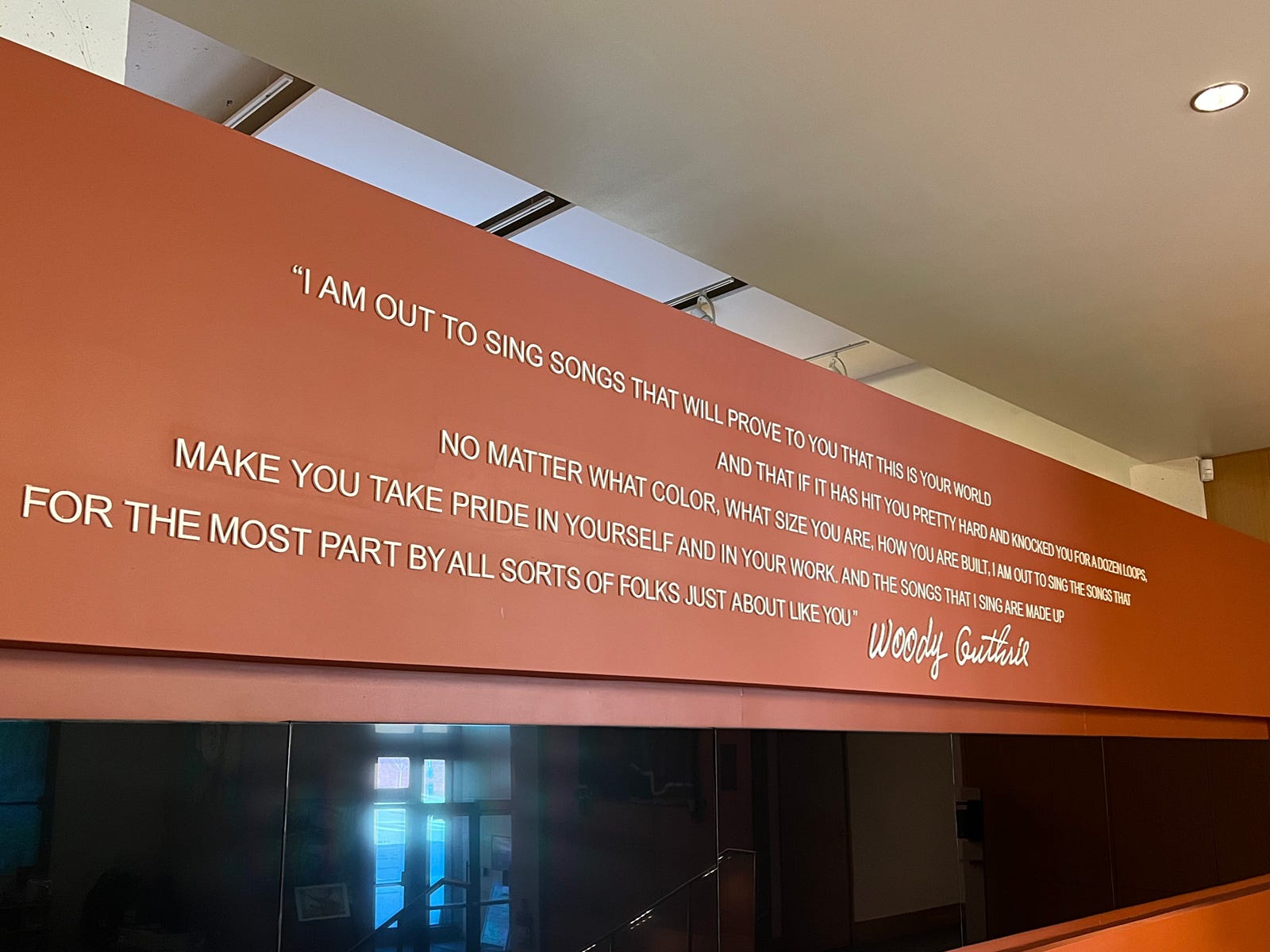 When we shared our New Year’s post including Woody Guthrie’s own famous resolutions/”rulin’s,” I was reminded of the visit that Hightower and I made to the fantastic Woody Guthrie Center in Tulsa, OK this past spring. Not only is the Center a thoughtful and beautiful collection of Woody’s work, but it’s also a poignant and insightful record of that era that he lived through. (With a bonus original copy of the song lyrics he wrote about Trump’s dad, his landlord when he lived in Brooklyn!)